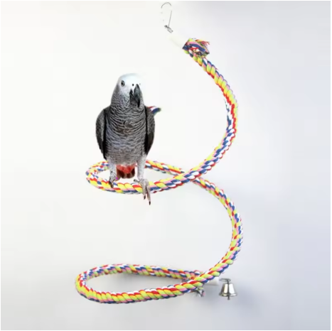 Birds use spiral ropes to perch, kapok ropes with bells, cages, hanging swings, parrots, bungee jumping toys for chewing and climbing