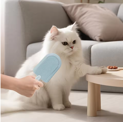 Pet ice cream massage comb, soft round headed cat brush, removes pet hair from furniture and clothes, cleaning brush - Blue