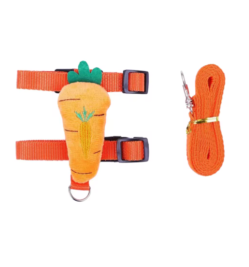 Rabbit cat harness and leash set with adjustable pet leash suitable for outdoor walks with small animals such as ferrets, piglets, hedgehogs - Orange